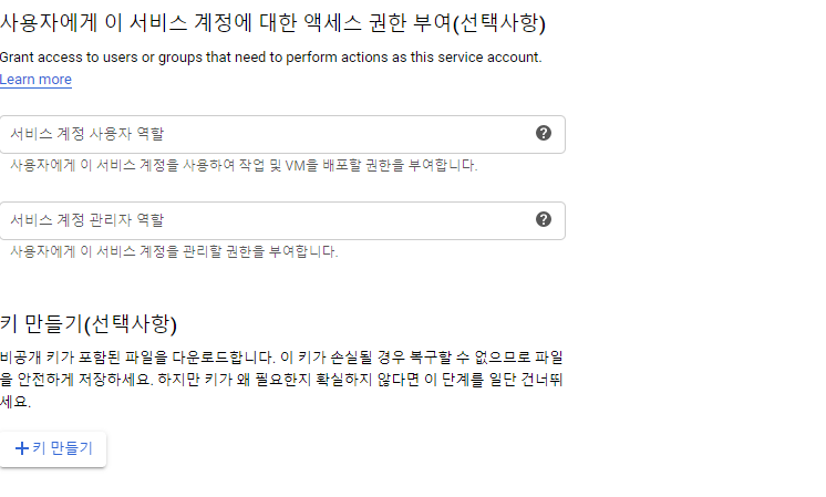 서비스 계정이 당연히 없을 것이다. '서비스 계정 만들기'를 클릭한다.